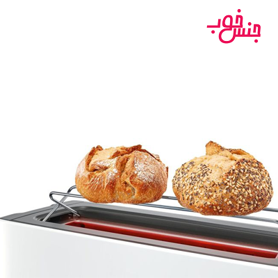 توستر بوش مدل TAT6A001 به صورت آسانسوری عمل می کند و پایان عملیان به سمت بالا هدایت می شود تا نان خود را به راحتی بردارید.