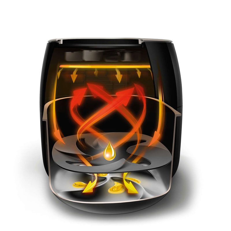 این سرخ کن فوق العاده مجهز به تکنولوژی Twin TurboStar یعنی دارای یک ظرف سبد مانند دیگر به غیر از ظرف اصلی است که تمامی روغن ها به داخل آن ظرف تلون ریخته می شود که تا 90 درصد از چربی آن گرفته خواهد شد .