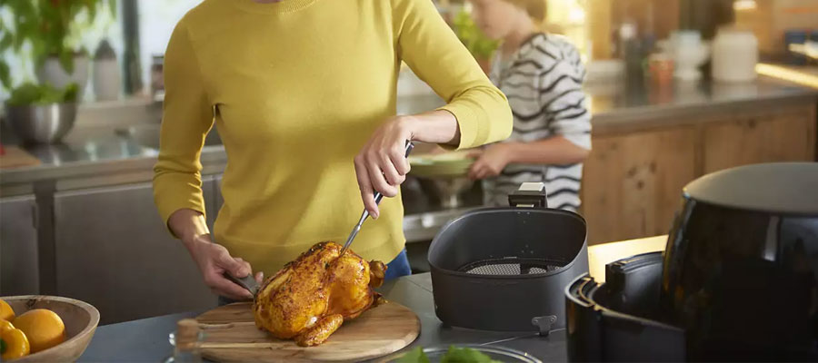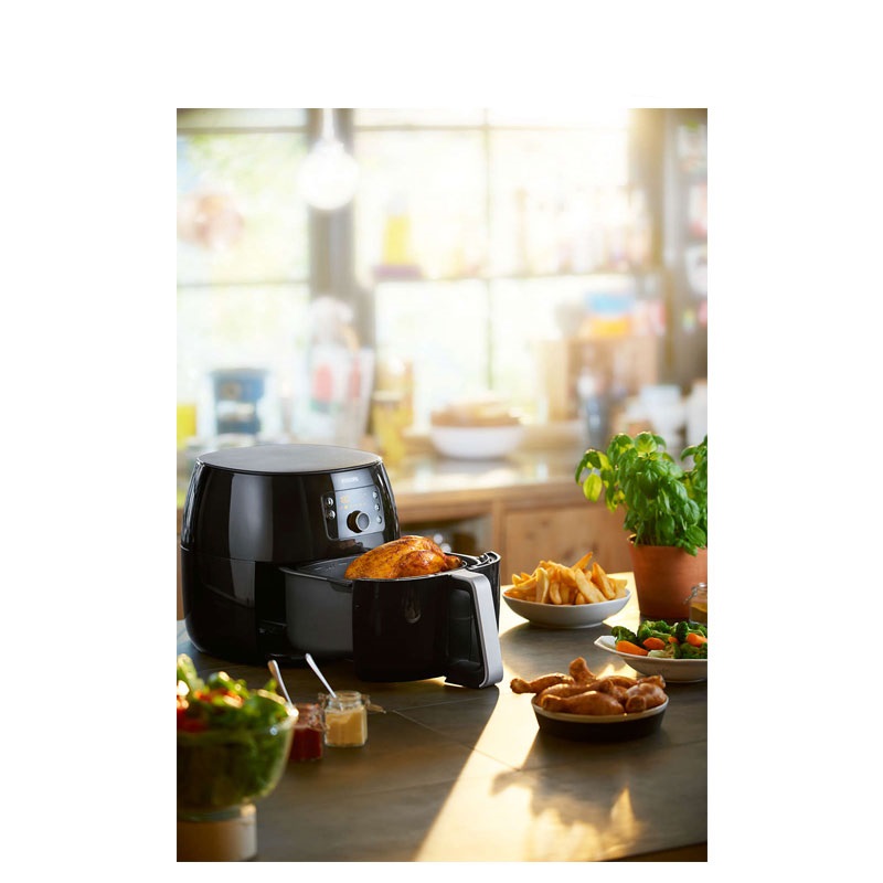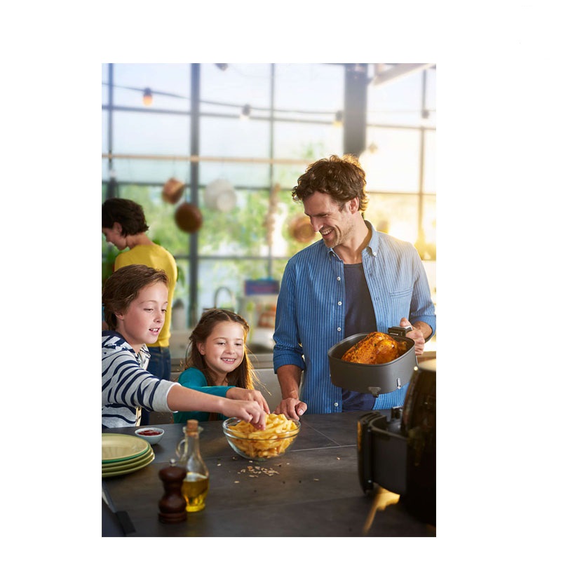 گنجایش ظرف به قدری مناسب و بالاست که می توان دو عدد مرغ درسته را داخل آن طبخ کنید برای زمان هایی که مهمان دارید یا وقت کافی برای پخت مجدد ندارین بسیار مناسب است و مزیتی که در این سرخ کن به کار گرفته شده تکنولوژی Rapid Air است که گرما را تا 7 برابر به گردش در می آوردو به پخت سرعت می بخشد .